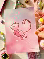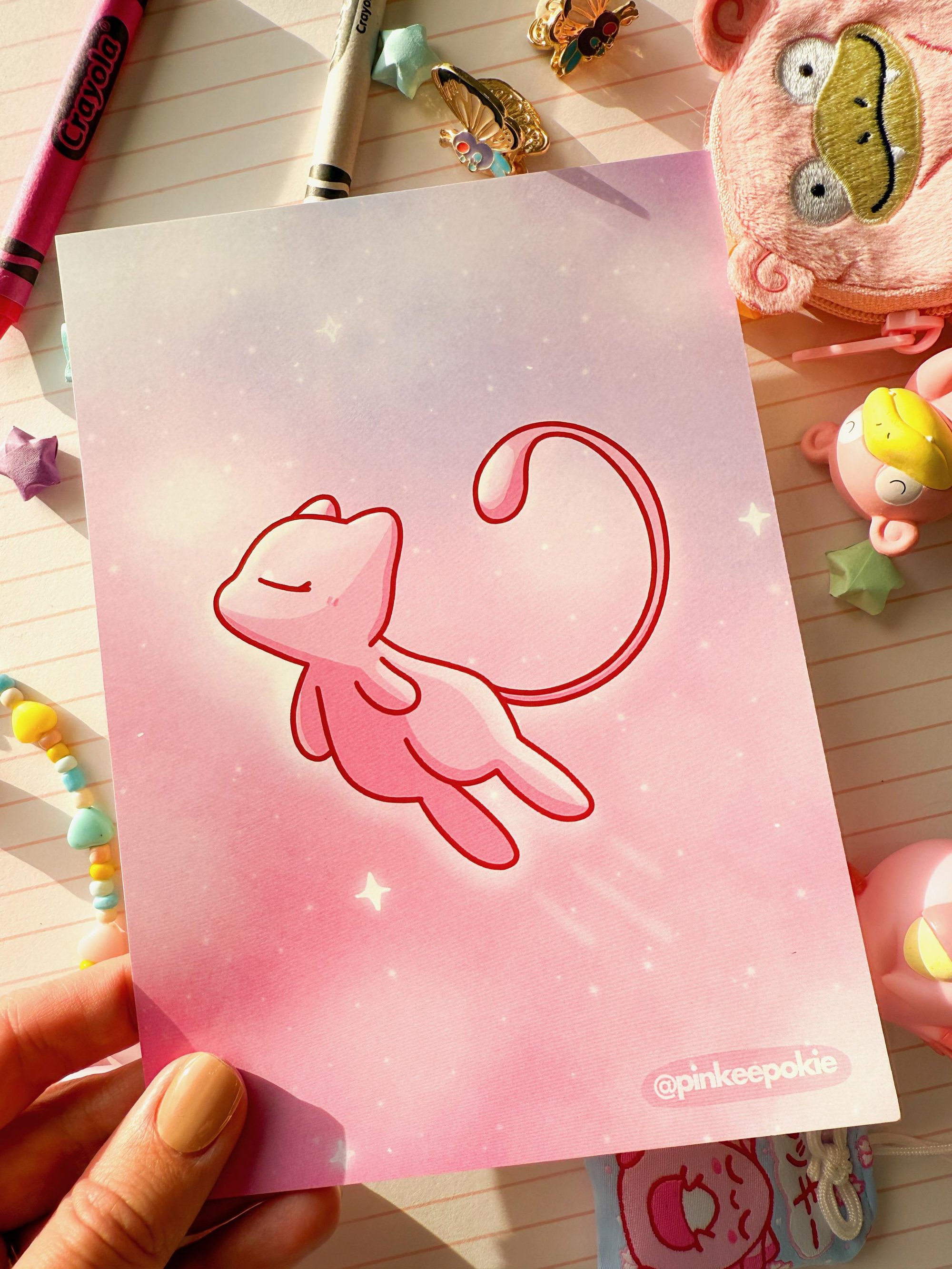 Cute mini print of Mew flying on premium Glossy paper. Perfect to hang on a mood board or in your office.