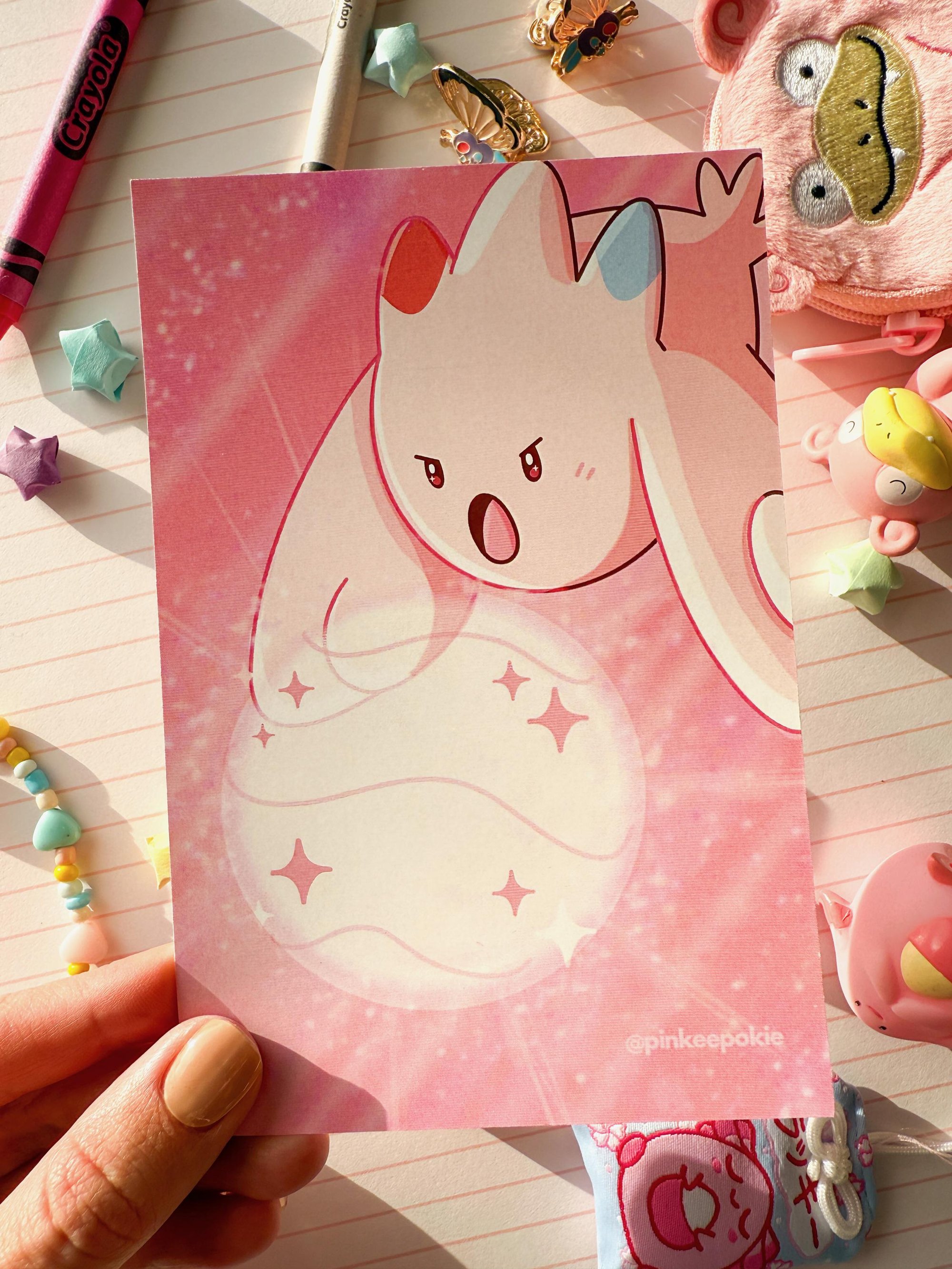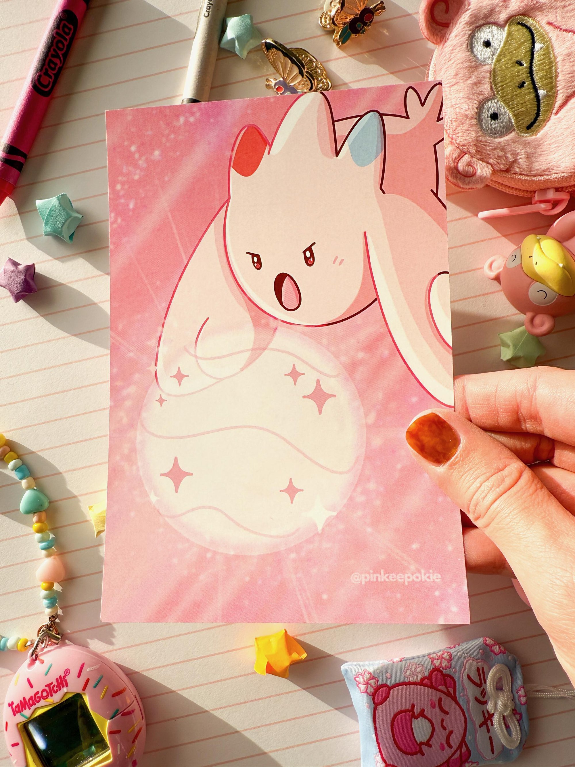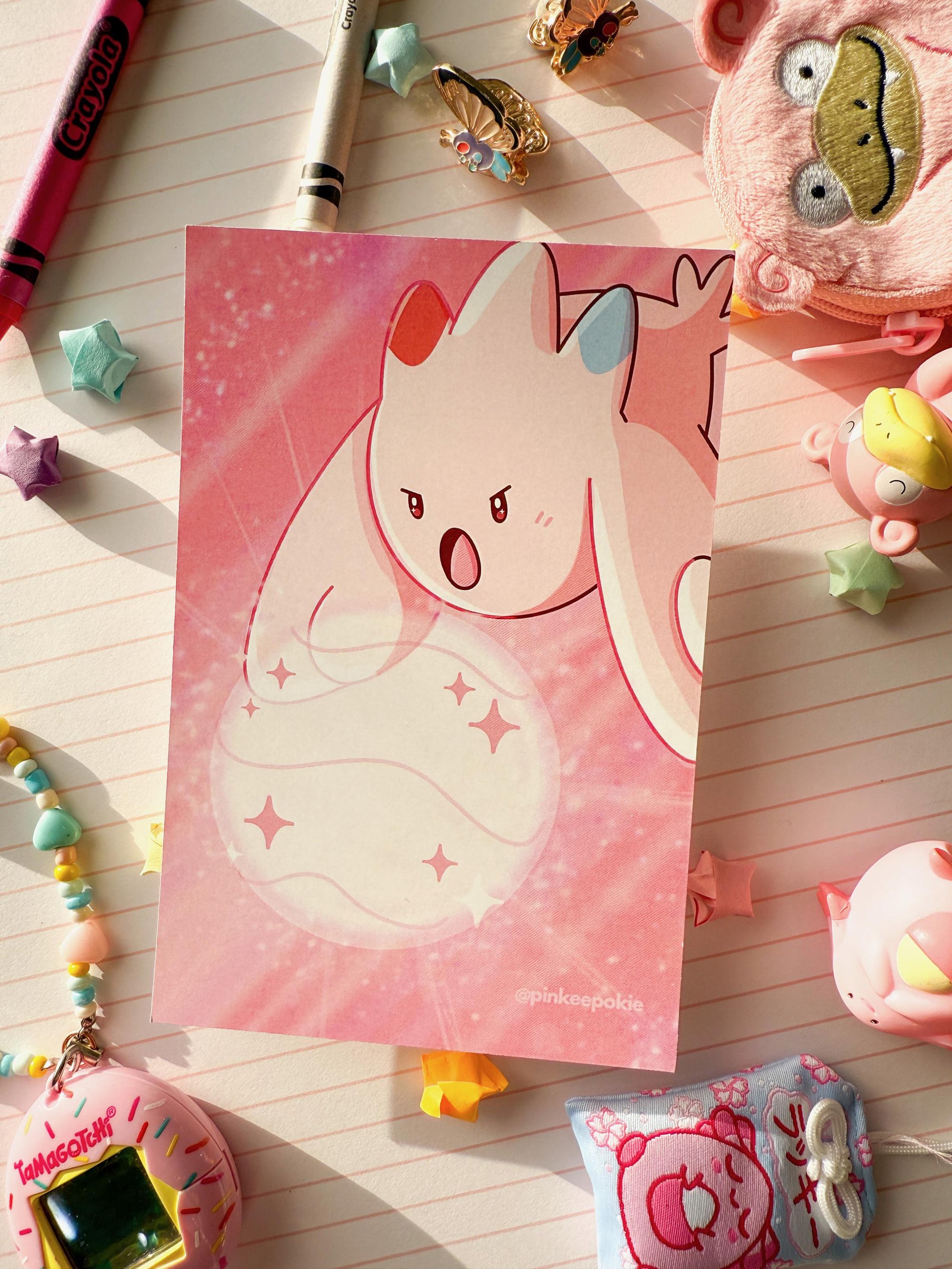 Cute mini print of Togekiss attacking with Dazzling Gleam on premium Glossy paper. Perfect to hang on a mood board or in your office.