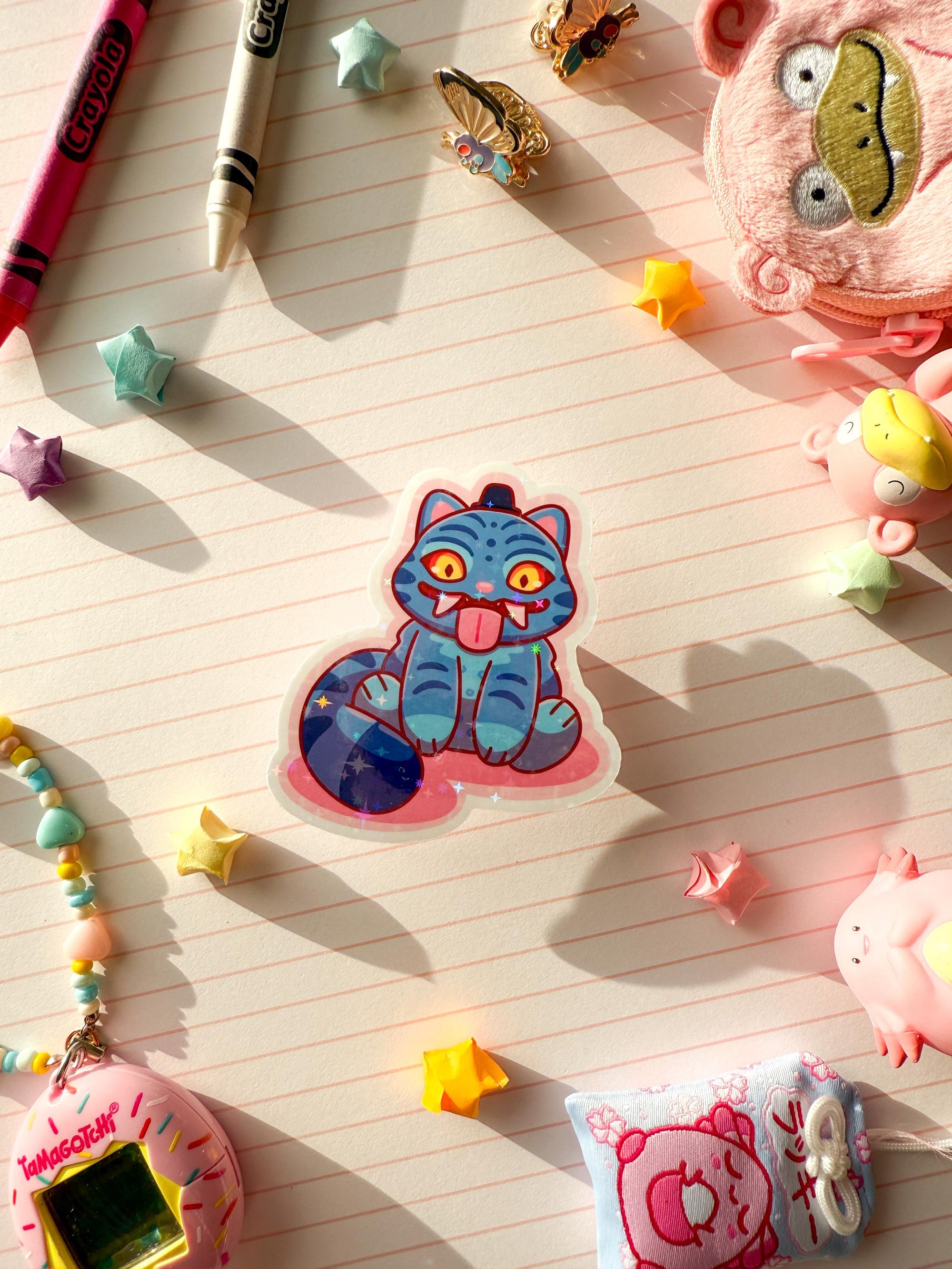 Ultra Glossy Glitter Derp Tiger Demon Vinyl Sticker