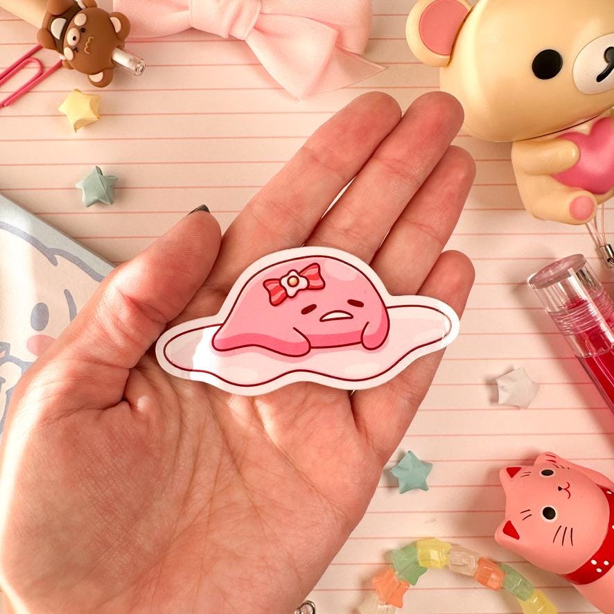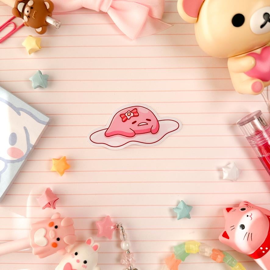 Pink Gudetama Valentine Heart sticker! Great for celebrating Valentine's Day! Great for laptops, notebooks, anything you put stickers on!